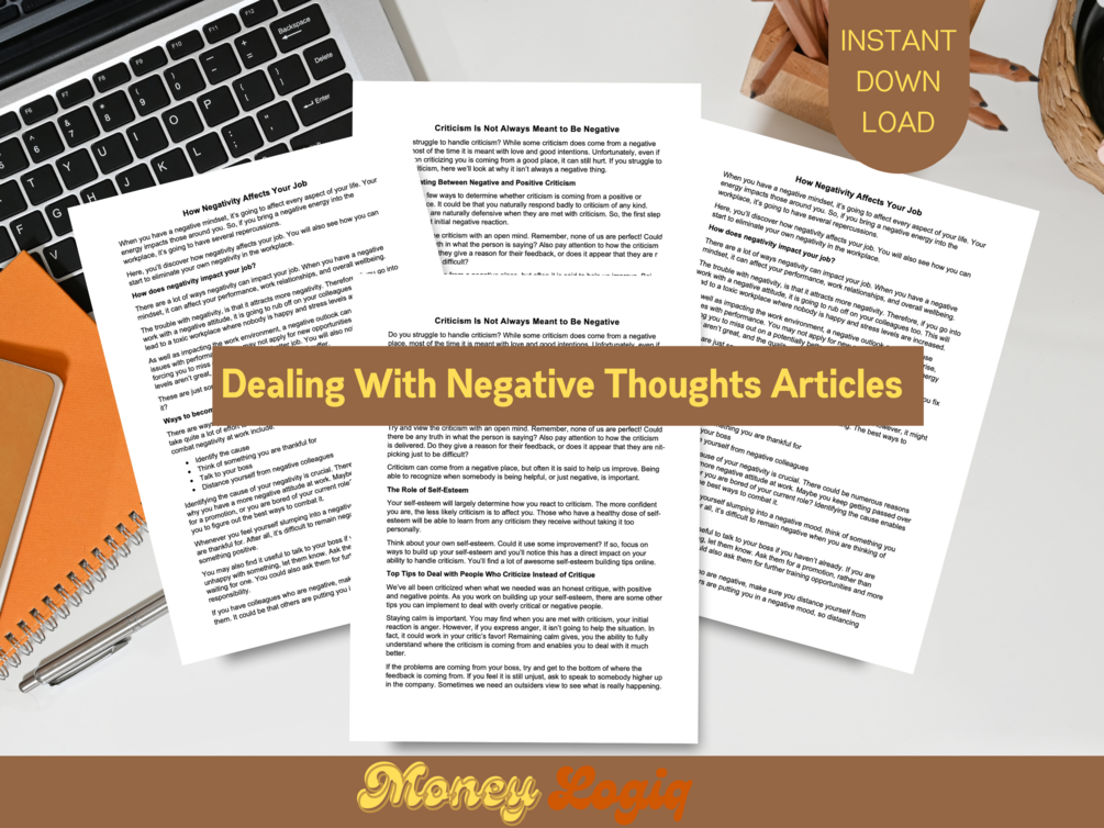 That's why we created our Dealing With Negative Thoughts Articles package. This package includes 5 different articles that you can read, share on social media, or even add to your own blog. Each article is packed with helpful tips and strategies for dealing with negative thoughts effectively.